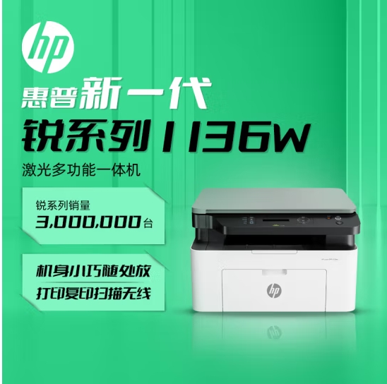 惠普(HP)1136w 黑白激光打印机多功能家用办公打印机 复印扫描无线商用办公(136w升级版/代替1188w) 自营